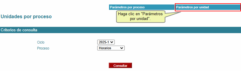 Para realizar la apertura, haga clic en Parámetros por unidad.