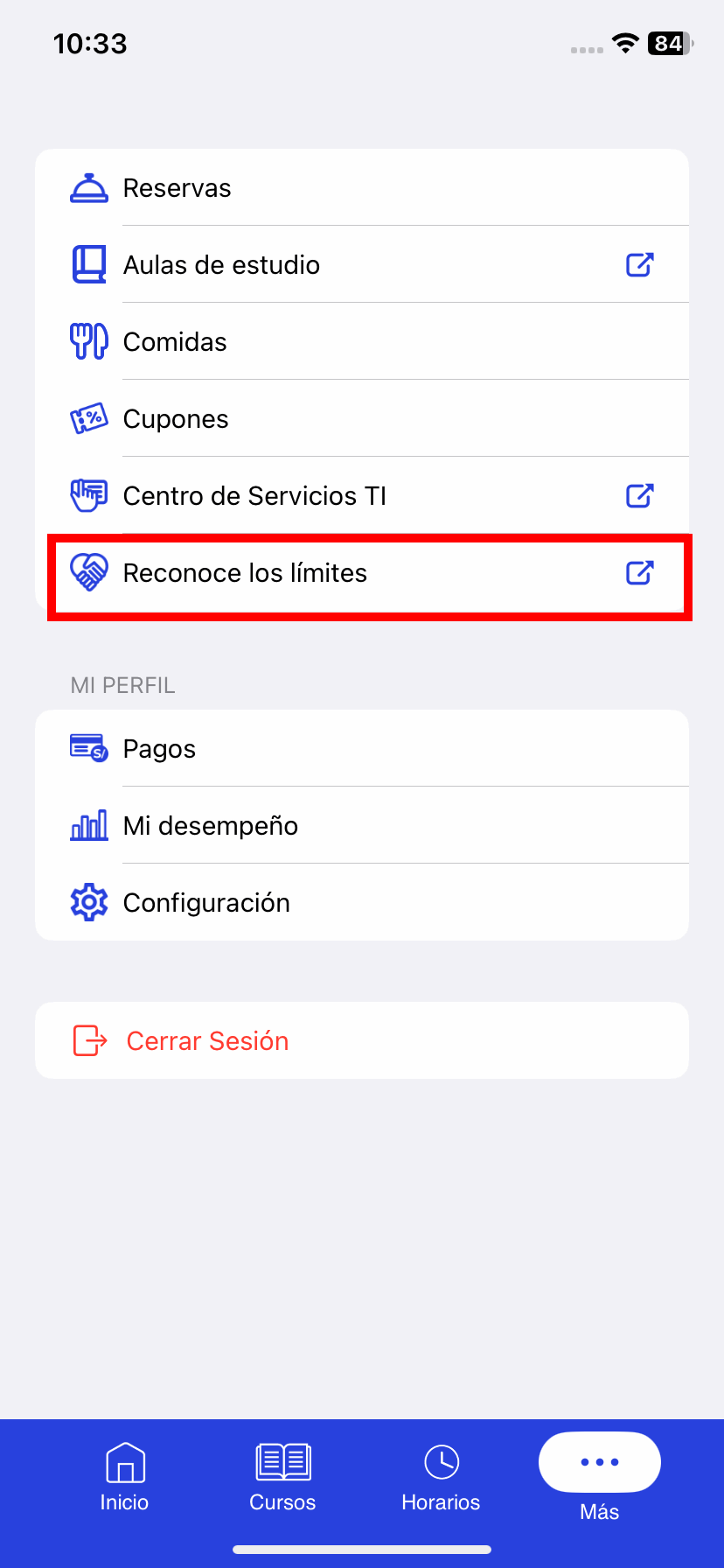 En esta opción se le redireccionará al enlace de "Reconoce los límites" https://reconoceloslimites.pucp.edu.pe/ a través su navegador.