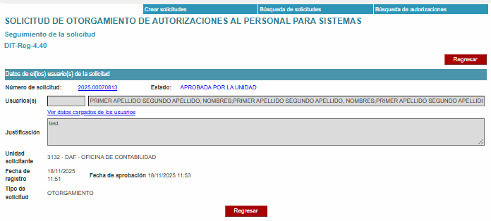 Todos los usuarios han sido evaluados por la(s) Unidad(es) de Servicio y la Solicitud Informática asociada (si existiese) está en estado CERRADA. |