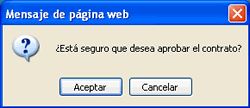 Enseguida, se mostrará una ventana de diálogo, preguntándole si desea aprobar el contrato. De estar de acuerdo, presione el botón Aceptar.