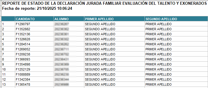Reporte de Estado de DJF Evaluación del talento y exonerados