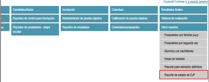 En la sección Otros Reportes deberá seleccionar la opción Reporte de estado de DJF. Se descargará automáticamente el reporte en formato Excel.
