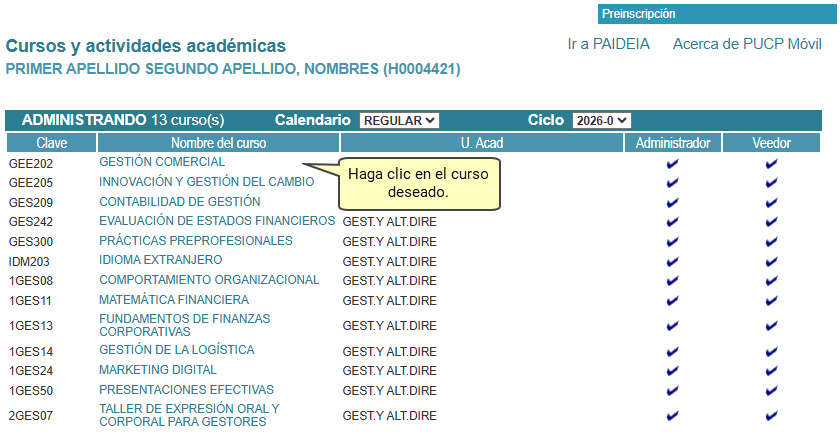 al curso deseado tal como se muestra a continuación: