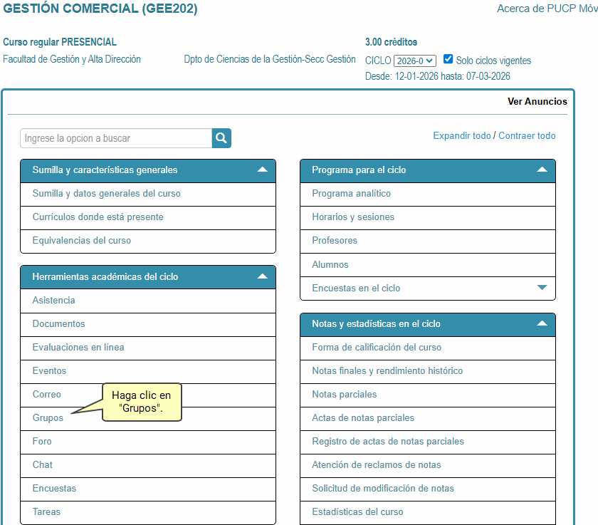 En la siguiente página, haga clic en la herramienta Grupos.