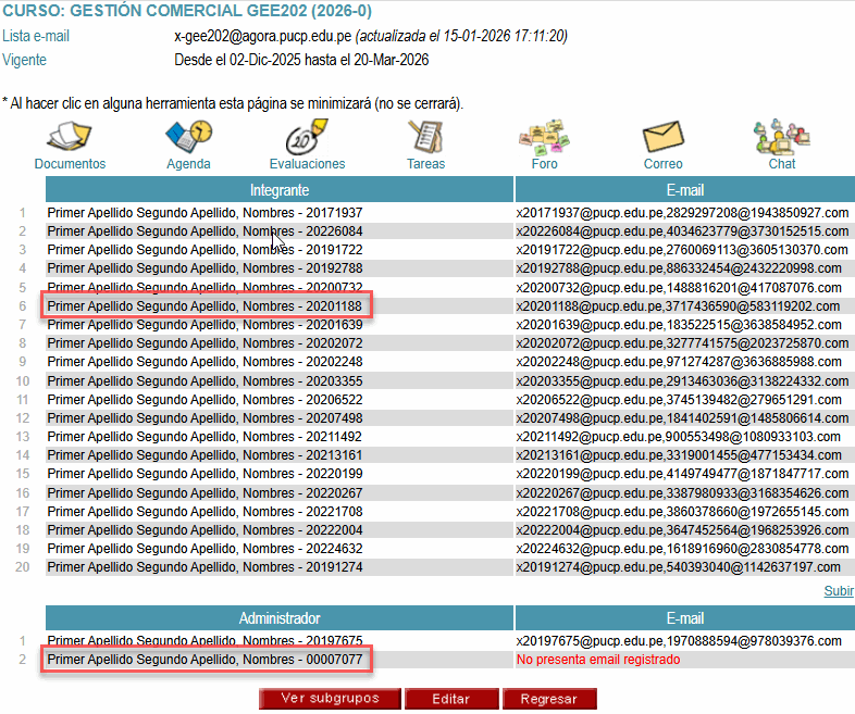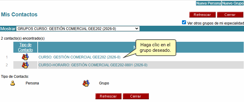 personales o los grupos de los cursos que dicta a través de la