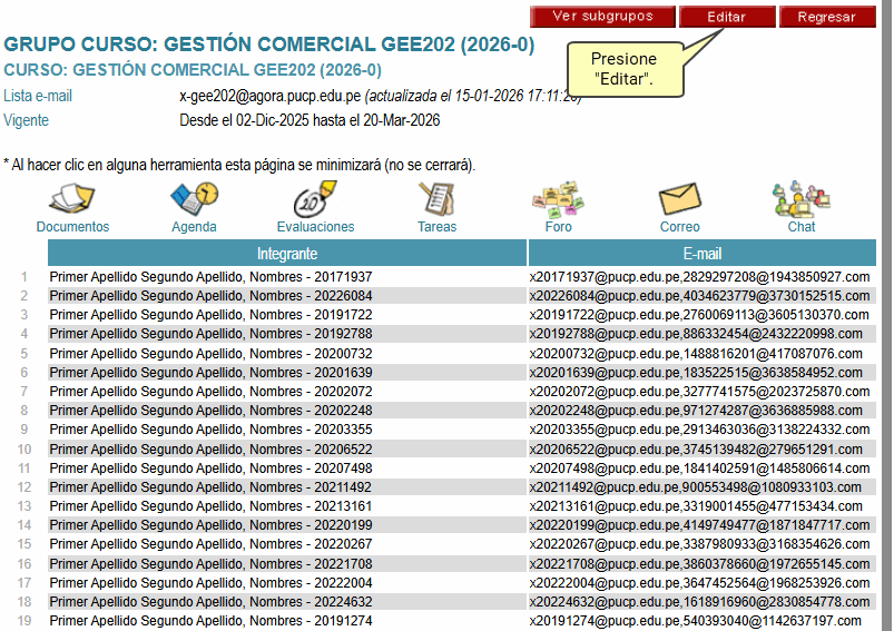 del grupo seleccionado. Presione el botón Editar.