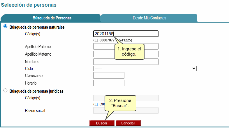 realizar la búsqueda introduciendo el código de la persona