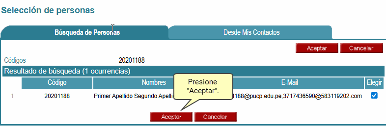 personas, seleccione a las personas indicadas y luego presione el botón