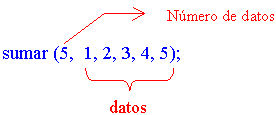 Se desea sumar varios datos diferentes, el número de ellos varía cada vez que se invoca. Así: