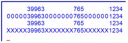 Finalmente mostraremos cómo poder rellenar los espacios colocados en los formatos con otro caracter diferente: