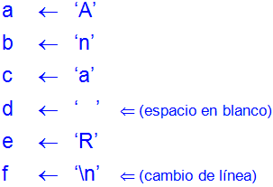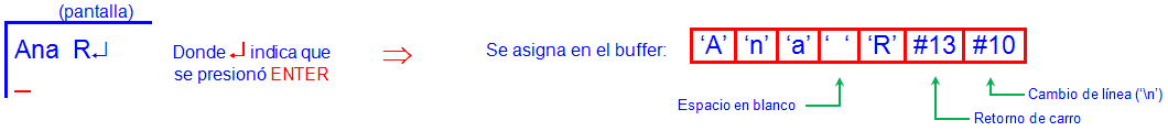 En el siguiente ejemplo se leer´n varios caracteres, aquí se apreciará qué es lo que se asignará a las variables: