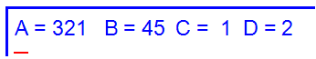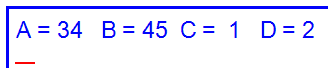 printf("A= %d B= %d C= %d D= %d\n", a, b, c, d);