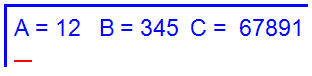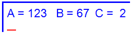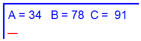 printf("A= %d B= %d C= %d\n", a, b, c);