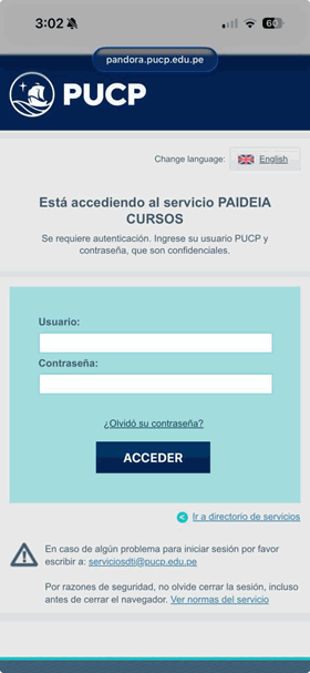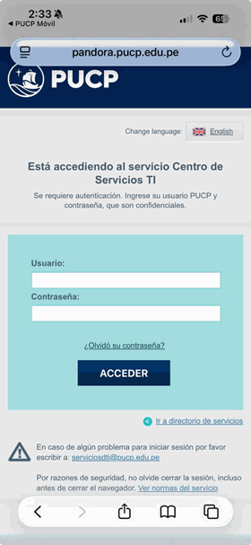 Al ingresar a su sesión de PUCP móvil visualizará la pantalla de identificación.